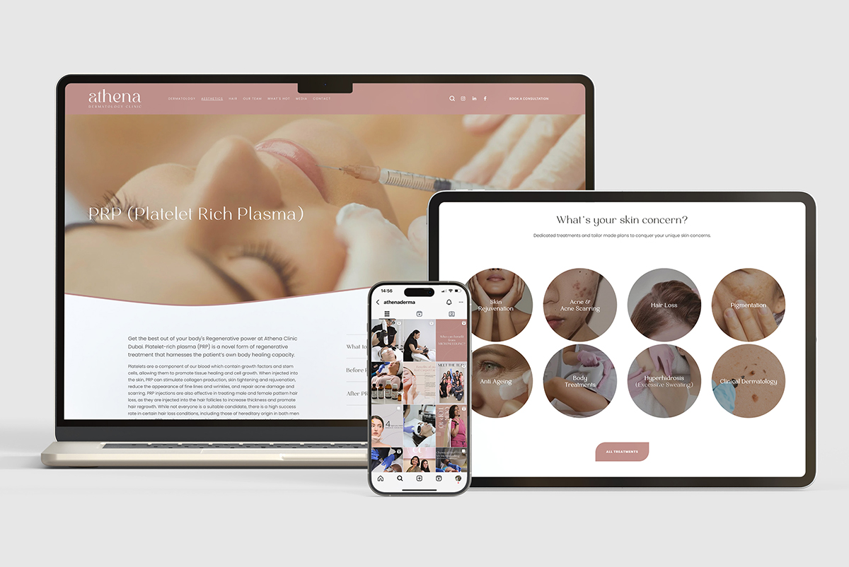 Athena Dermatology is a clinic focused on the concept of ageing naturally. I was brought in to create the full brand and identity from the ground up — shaping the visual language, tone and positioning to reflect a modern, holistic approach to skincare.